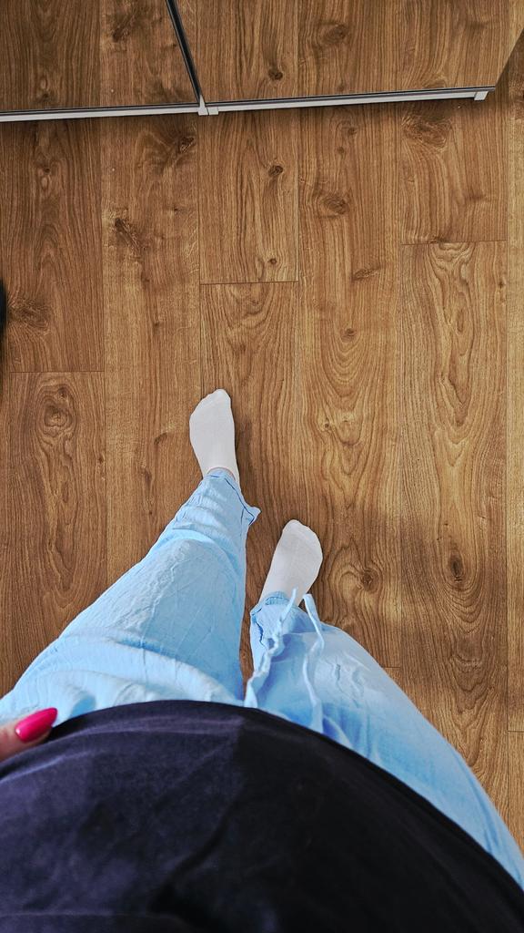 Super calças para sábado em casa 😊 Respiráveis, cor linda, têm bolsos 😍 Para mim, são esses bolsos que são cruciais. São também calças de cintura muito alta, por isso não precisam ser ajustadas, ficam bem no lugar. O elástico, por outro lado, é muito forte. Se não gostam de apertar na barriga, vale a pena comprar calças um tamanho maior. :)