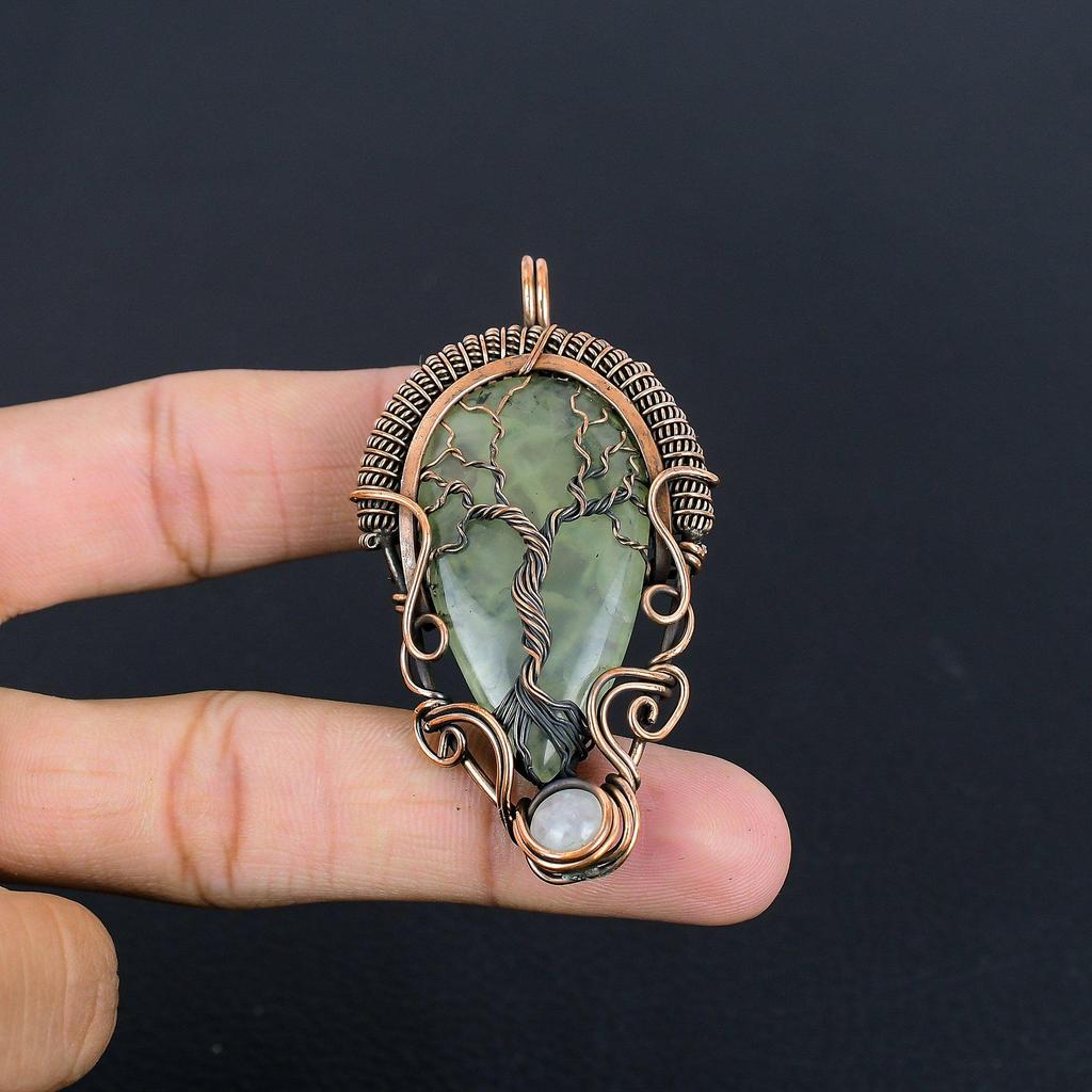 Prehnite Jewelry, 999 Copper Wire Wrapped Pendant Handmade Gemstone Jewelry, Gifts For Wife Brand New Pendant