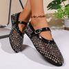 Moda 2025 Luxo Cristal Strass Rede Sapatilhas de Ballet Mulher Design de Marca Rebite Malha Sapatos Mary Jane Senhoras Mocassins de Verão Tamanho