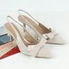Fashion High Heels Ladies Summer Sandals Beige Patent Leather Office Work Stiletto Footwear Luxury Dramatic Bow Party Prom Women Shoes