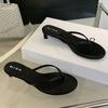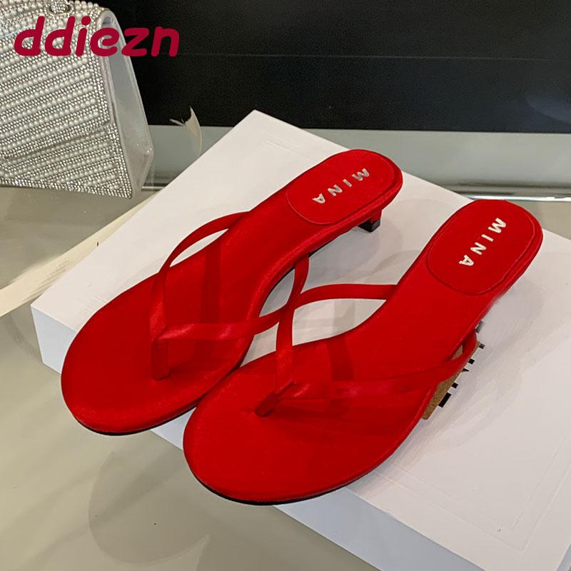Fashion Red Fashion Round Toe Ladies Low Heel Slippers Sandals Shoes Summer Beach Slides Women Heeled Slippers Shoes Female Flip flops
