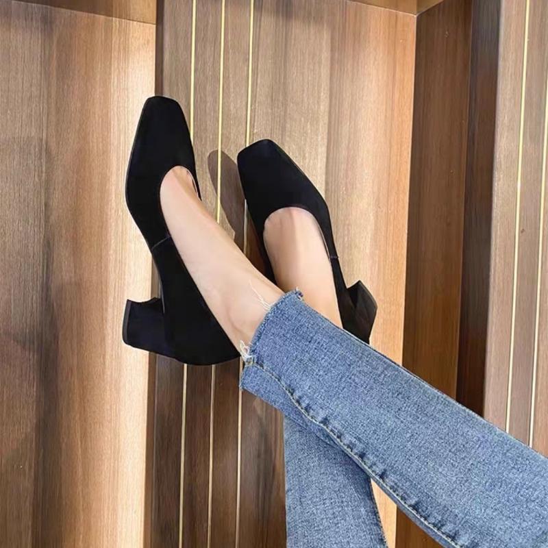 Fashion 2025 New Black Temperament Professional Women's Shoes Mid-heeled Square Toe High Heels Women's Thick Heels