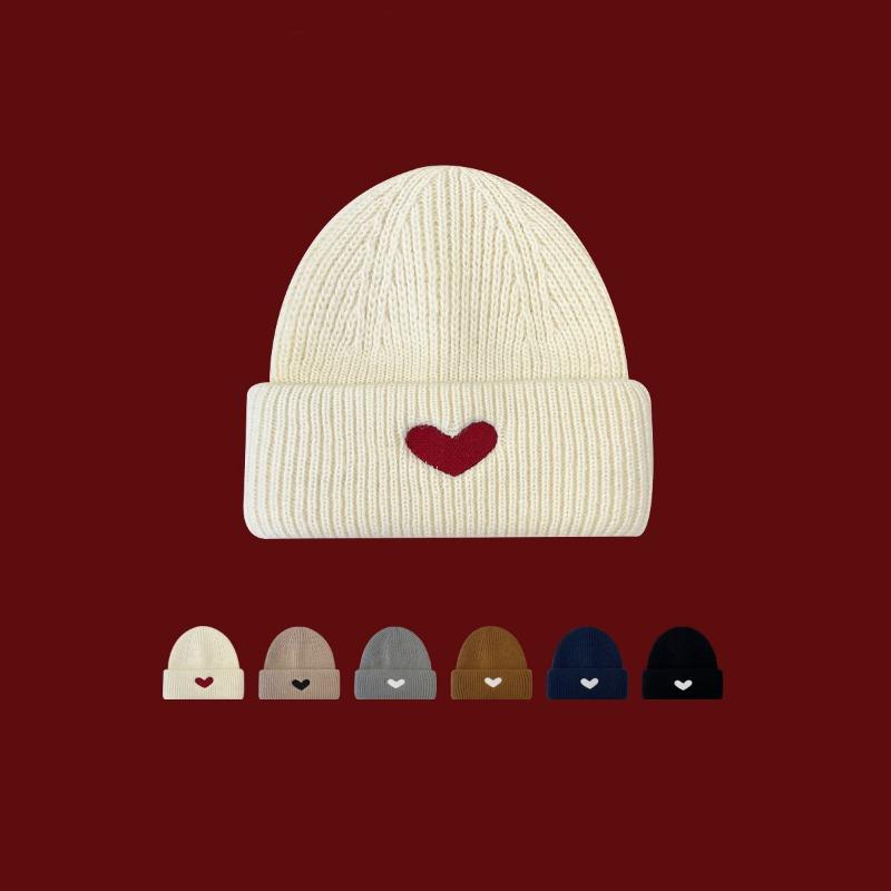 Sweet love embroidered wool hat women's winter warm versatile student knitted hat showing face small cold hat tide