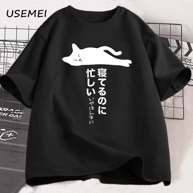 Funny Lazy Cat T-shirt Men Women Japanese Streetwear T Shirt Cotton Short Sleeve Round Neck Tee Shirt Retro Men's Clothing Top