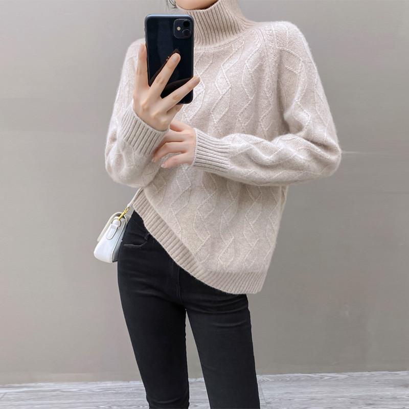 Suéter Feminino Qinghe 100% Caxemira Pura - Pulôver de Inverno de Luxo Ultramacio
