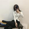 Outono Inverno Sexy Skinny Umbigo Lapela Zíper Duplo Listra Pit Tricô Cardigan Suéter Jaqueta Curta Manga Comprida Top Cor Sólida