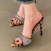 Fashion Leopard Women Sandals Super High Shoes 2024 Heels Rhinestone Designer Fashion Ladies Shoes For Pointed Toe Casual Female Pumps