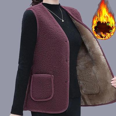 Colete de Lã de Cordeiro para Idosos e Meia-idade Jaqueta Feminina Acolchoada com Veludo Colete Sem Mangas com Botões para Mães