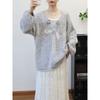 Autumn and winter new medium and long three-dimensional flower bow sweet knitted sweater top loose sweater pullover woman