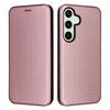 Para Capa de Celular Samsung Galaxy S24 FE Textura Fibra de Carbono Capa de Couro com Fechamento Automático Magnético
