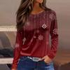 Moda feminina bainha fenda casual natal estampado gola redonda manga comprida top