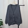 Gray knitted cardigan autumn and winter new loose and thin lazy style soft waxy temperament sweater jacket women