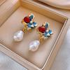 Brincos Vintage de Pérola Irregular com Gota de Óleo para Mulheres Brincos de Temperamento Coreano Luxo Leve Alto Zircônia Irregular Presente