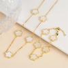 2024 Hot Sale 10 Colors Five-Leaf Flower Set Bracelet Necklace Classic Simple Women Zircon Set Suitable For Daily Party Wear