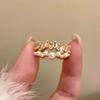Fashion Zinc Alloy Color Pearl Chain Cuff Ring For Women Couples Simple Metal Double-Layer Adjustable Ring Bride Zircon Gifts
