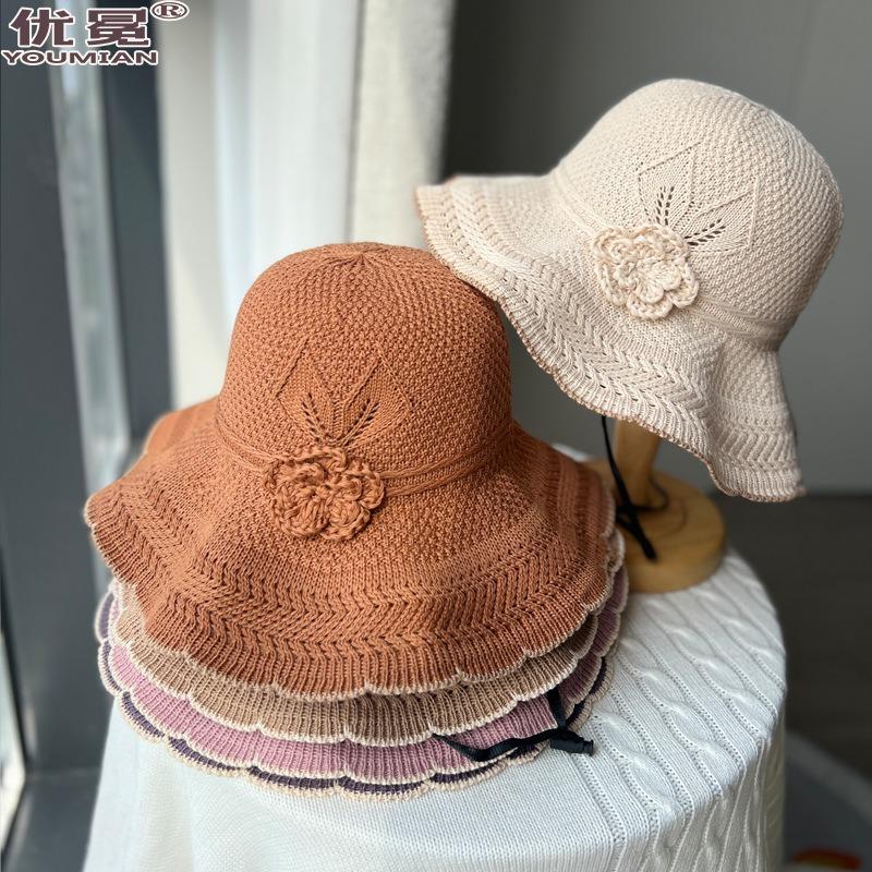 Summer outdoor breathable sunscreen bucket hat women's big eaves show face small elegant versatile sun hat