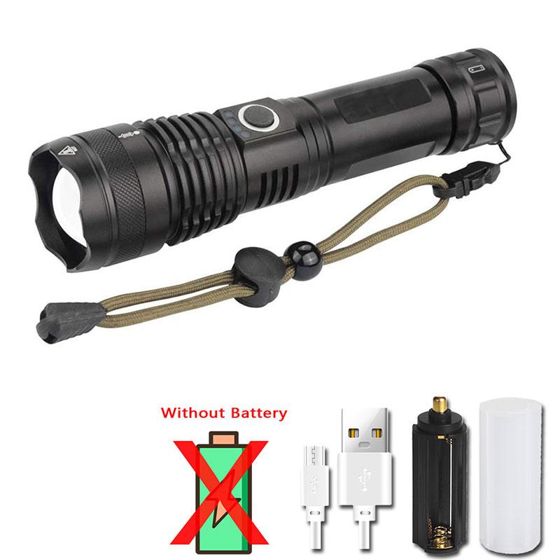Poderosa lanterna LED XHP70 5 modos USB recarregável Zoom Lanterna 26650 Bateria Camping Outdoor Luz de emergência