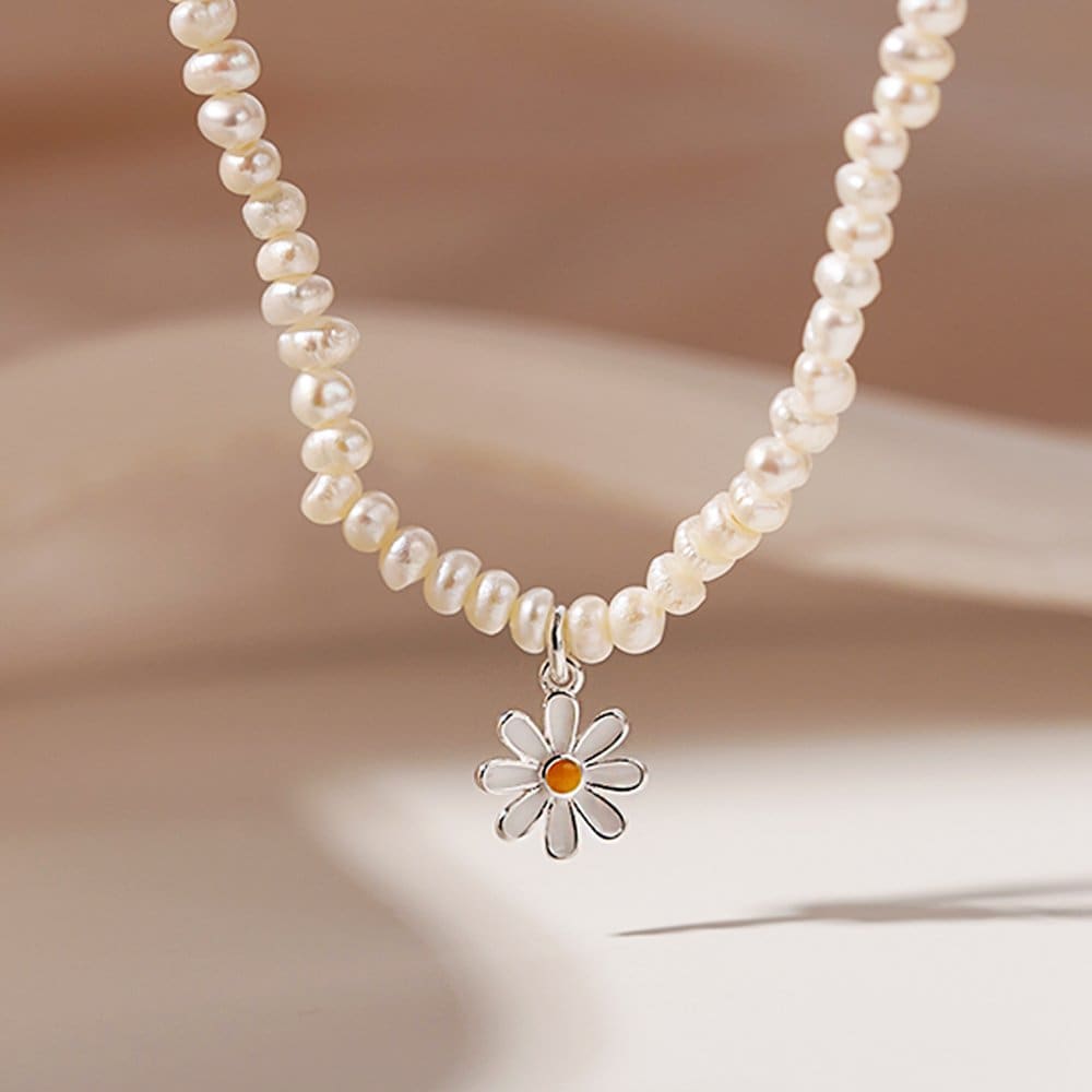 925 Silver Noah Daisy Natural Freshwater Pearl Necklace W