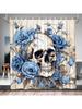 Cortina de Chuveiro Floral de Caveira Halloween Gótico Esqueleto Flor Rosa Azul Dia de Todos os Santos Casa Vintage Moda Decoração de Outono Tecido
