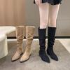 Fashion Women's Boots Pointed High-heeled Khaki Black Stacking Boots Women's New Long Tube Knight Boot High Quality Fashion Suede Boots