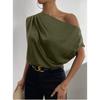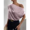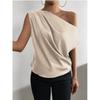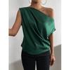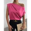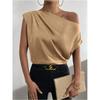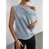Satin Shirt2025 Spring European and American Women Satin Artificial Silk Irregular Sloping Shoulder off-Neck Sleeveless Shirts