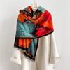 Cachecol Literário de Imitação de Caxemira de Inverno Feminino Elegante com Estampa de Folha de Bordo Espessado Quente e à Prova de Vento Versátil