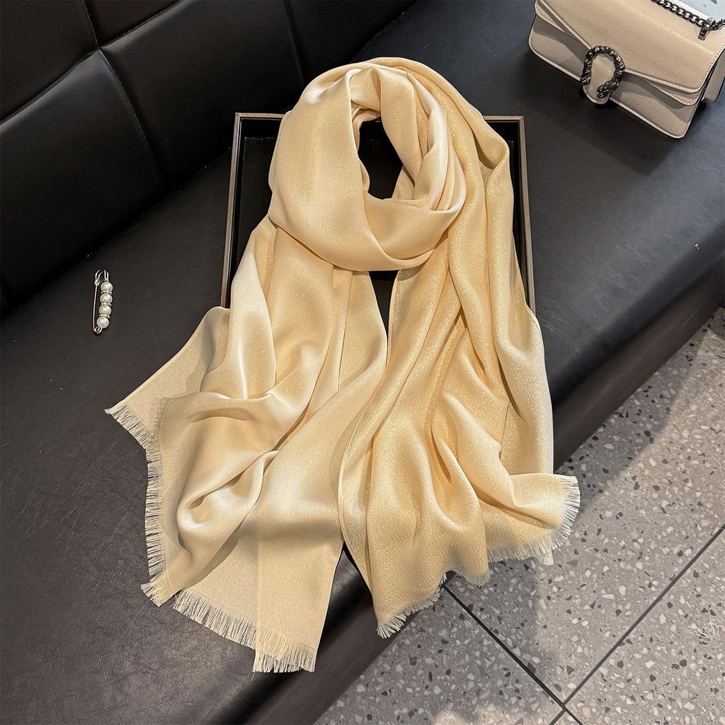 Cachecol de Seda Dourada Tencel Algodão Cor Sólida Seda Cachecol Feminino Moda Versátil Imitação Seda Cachecol Fino Longo Cachecol de Praia Cachecol
