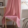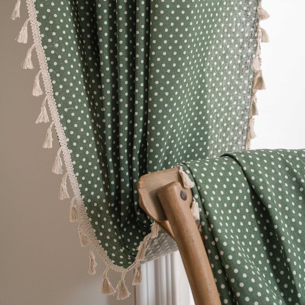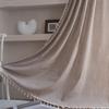 American Cotton Linen Curtains Farmhouse Style Darkening Curtains with Tassel Rod Pocket Window Drapes for Dining Living Bedroom