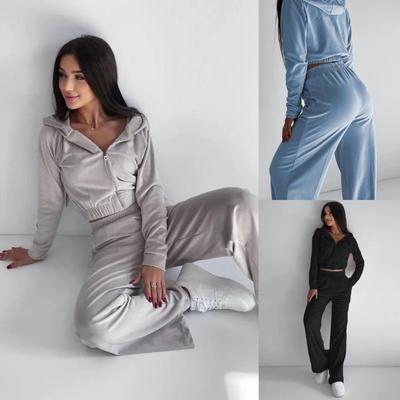 Conjunto Casual de Moletom com Capuz Feminino Outono/Inverno 2024 de Duas Peças