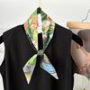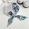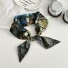 Blue silk scarf, long strip, new fashion, oil painting style, bow, headband, braided hair, tied bag, streamer, multi-purpose waist silk scarf.
