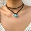 Double clavicle chain chocker collar ethnic style turquoise simple sweet cool necklace
