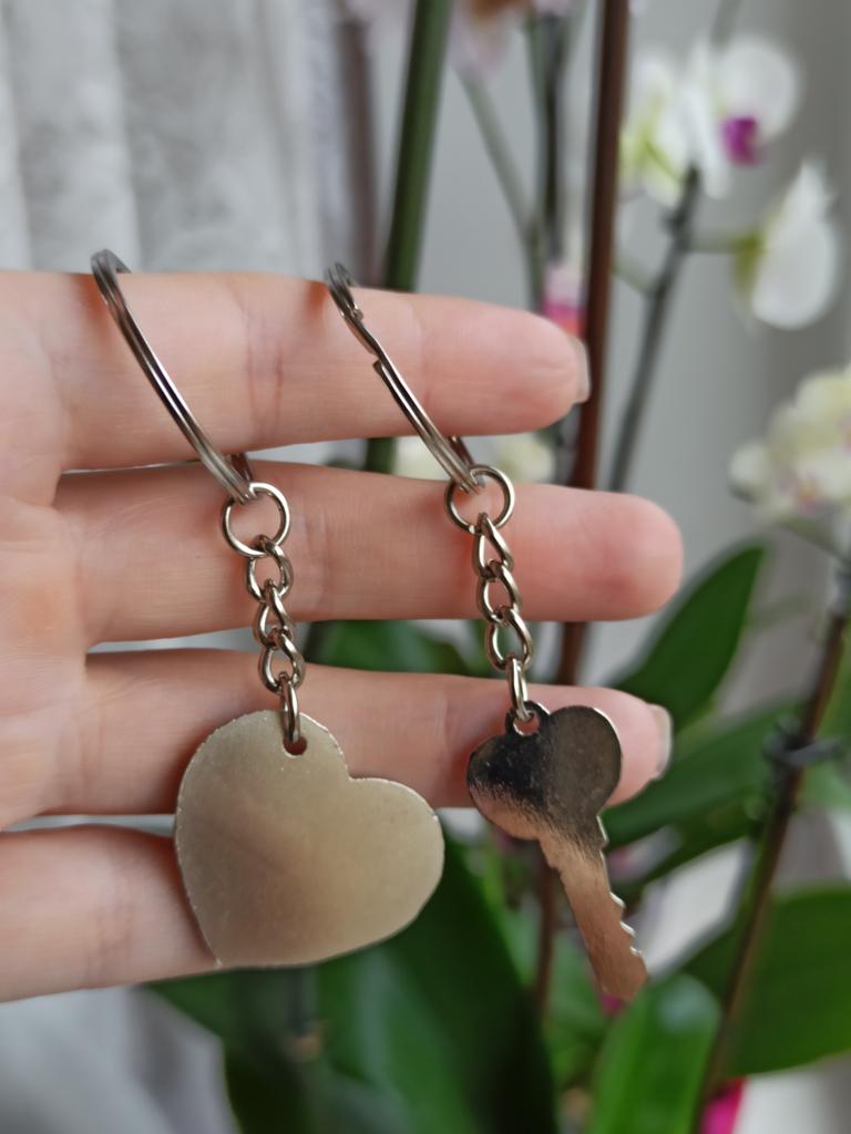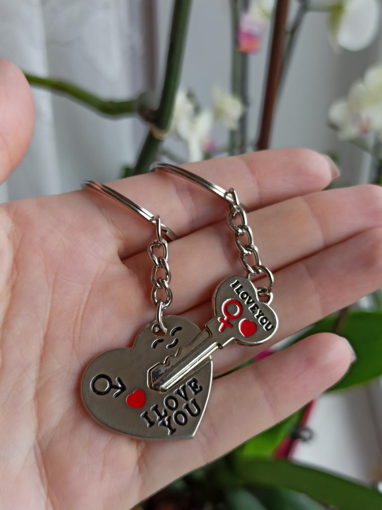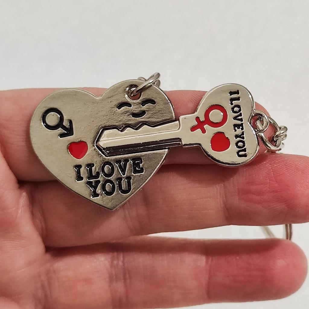 Chaveiros de casal Esses chaveiros são fofura e romance Chaveiros em forma de chave e coração com as inscrições "Eu te amo" Fabricados em aço inoxidável, duráveis. A qualidade é excelente: tudo é feito com cuidado. O chaveiro gostou muito. Eu recomendo!