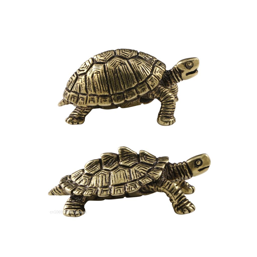 Solid Copper Turtle Figurine Small Desktop Ornaments Longevity Animal Sculpture Home Office Desk Decoration Accessories Gifts