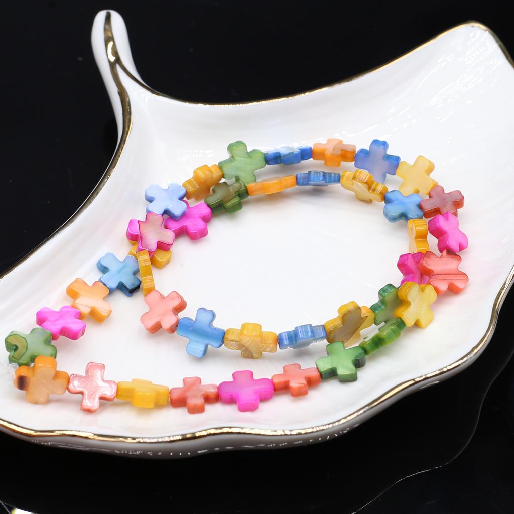 1Fio, Contas de Cruz de Concha Natural para Fabricação de Joias Suprimentos DIY, Presente Cristão Único para Mulheres Meninas, Comprimento 38cm
