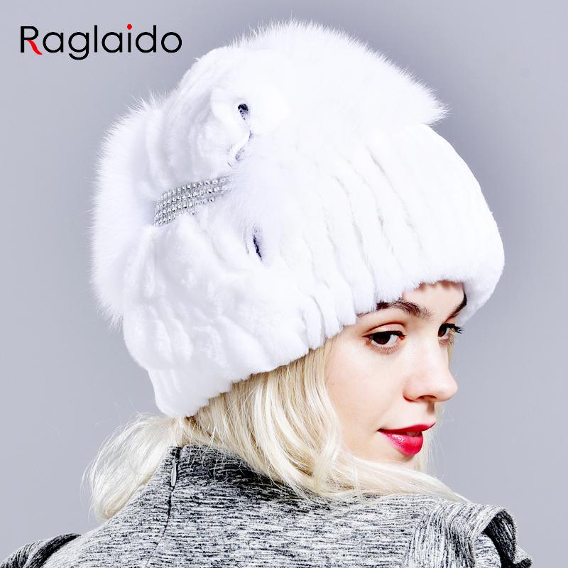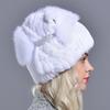 Natural Rabbit Fur Hat Winter Warm Hats for Women Thick Diamond Fashionable Stylish Girls Outdoor Hat Accessory White Snow Caps