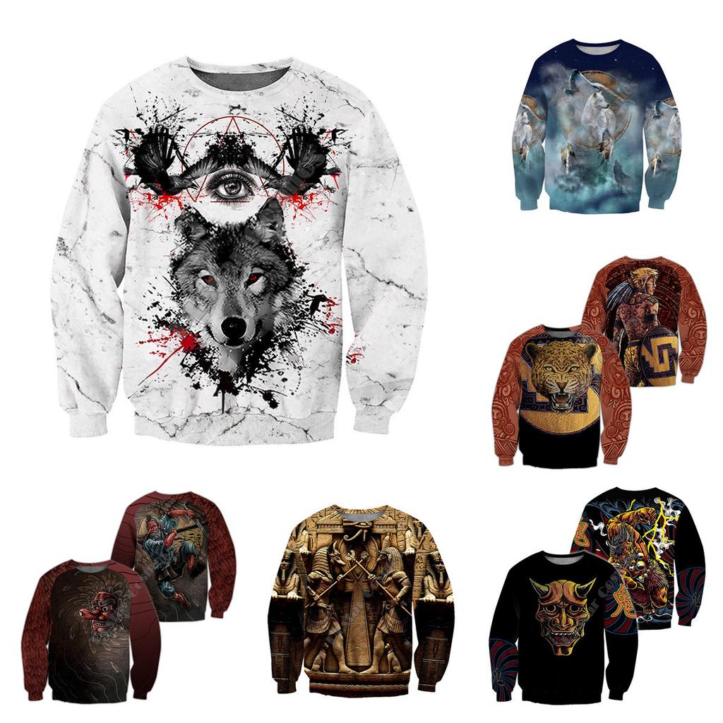 Spring and Autumn New Round Neck Sweater Fashion 3D Digital Tattoo Print Men's Long Sleeve Top