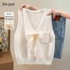 Características: O top de malha feminino apresenta um padrão, gola redonda, design moderno com laço nas costas, sem mangas, comprimento curto e está disponível em três cores para atender a diferentes preferências.