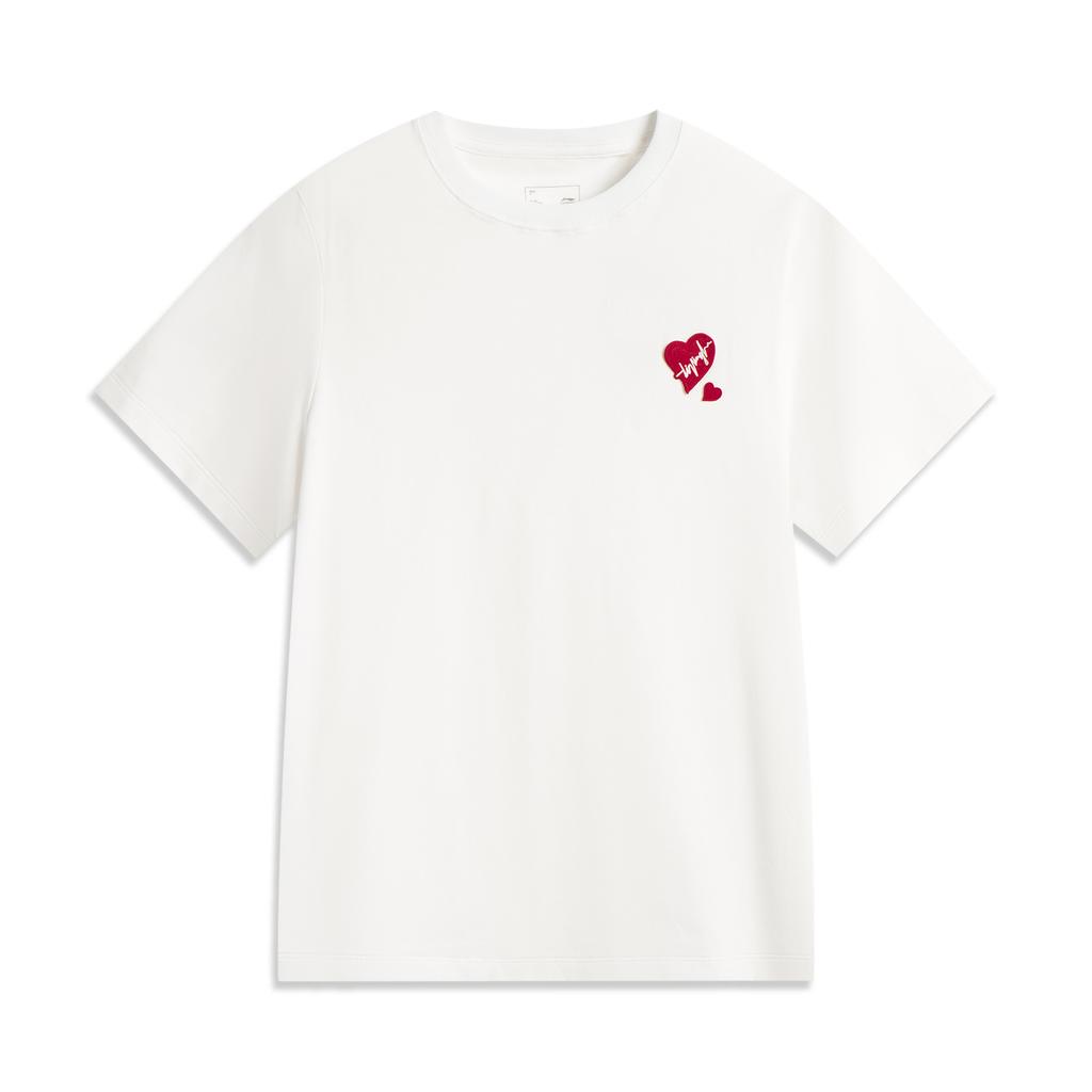 Li Ning Série Estilo de Vida Esportivo Moda Casual Cor Sólida Gola Redonda Confortável Respirável Versátil Camiseta Tops Femininos Standard-Branco AHSV990-2