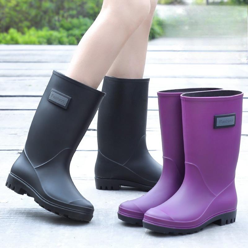 Fashion Rain boots women's four seasons fashion outdoor mid-tube waterproof non-slip rubber shoes fashion rain boots with cotton cover