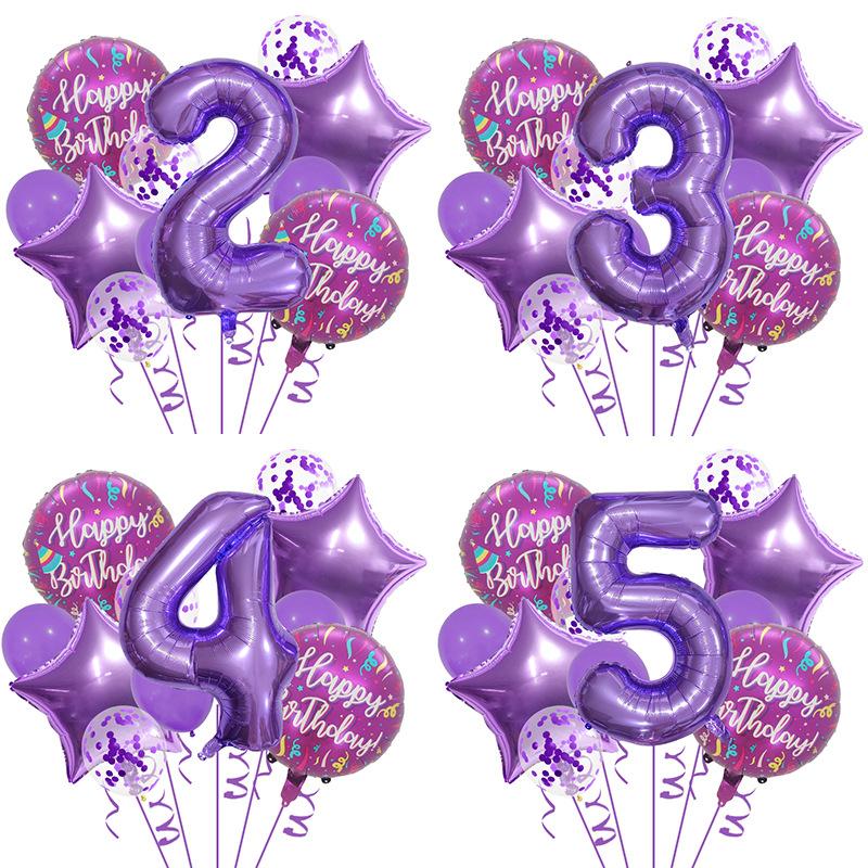 32-Inch Purple Digital Balloon Set, Happy Birthday, First-Year Party Supplies, Scene Decoration Supplies