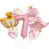 Conjunto de Balões de Filme de Alumínio Dinossauro Coroa Rosa Decoração de Cena de Arranjo para Festa de Primeiro Aniversário de Crianças Meninas