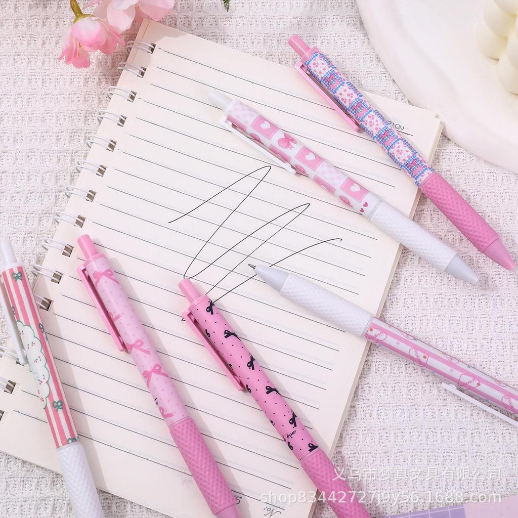 Caneta Gel Coração Delicado Rosa Laço de Ballet - Tinta Preta de Secagem Rápida, Design de Desenho Animado para Estudantes