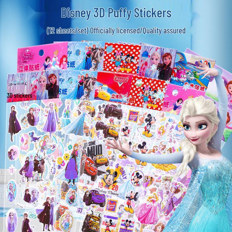 Adesivos de Bolha 3D de Princesas da Disney para Crianças - Adesivos de Recompensa Tridimensionais Criativos
