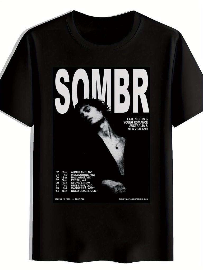 Camiseta Gráfica Masculina SOMBR Casual Gola Redonda Camiseta com Letras SOMBR Ousadas Tour de Lykke Li Lorde St Vincent Lavável à Máquina Verão
