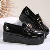Fashion Black Chunky Wedges Loafers Shoes for Women Fashion Metal Chain Slip On Platform Shoes Woman Plus Size Patent Leather Shoes 43