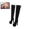 Moda Rimocy Mulher Plataforma Acima do Joelho Botas Sexy 17CM Super Salto Alto Vermelho Verniz Botas Longas Mulher 2025 Inverno Sapatos Pretos