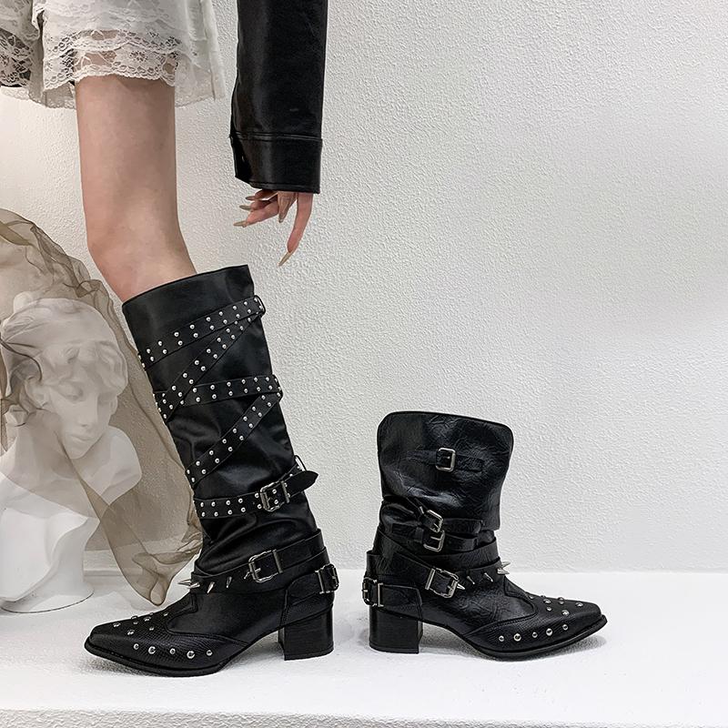 Fashion Designer Vintage Rivet Women Western Cowgirl Boots Fashion Autumn Winter Ladies Elegant Knight Long Booties