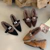 Fashion Autumn Fashion Furry Women Mary Jane Shoes Elegant Pointed Toe Low Heel Shoes Ladies Outdoor Comfort Warm Leather Footwear