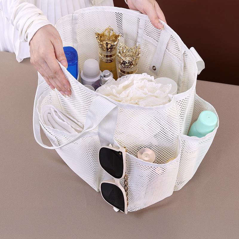 1pc Large Capacity Mesh Beach Bag Multi-pocket Foldable Toiletries Storage Bag Portable Home Swimming Bag Vacation Essentials