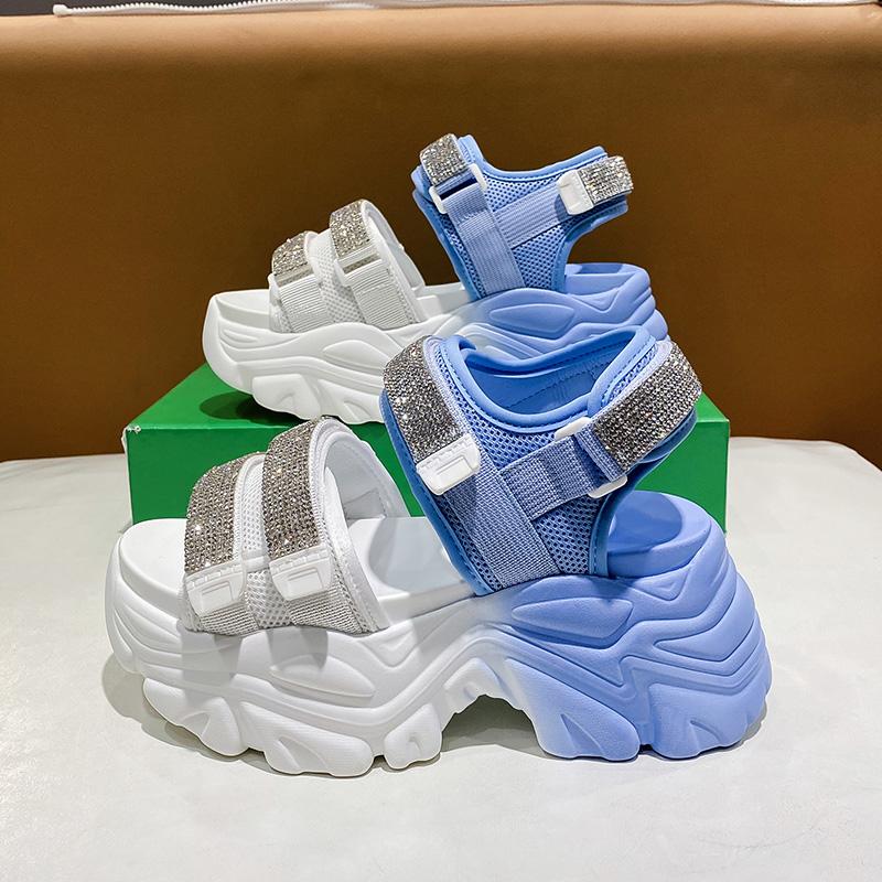 Fashion Women Thick Bottom Gladiator Sandals Summer Chunky Bling Sneakers Fashion High Platform Slippers 8CM Wedge Heel Beach Sandalias